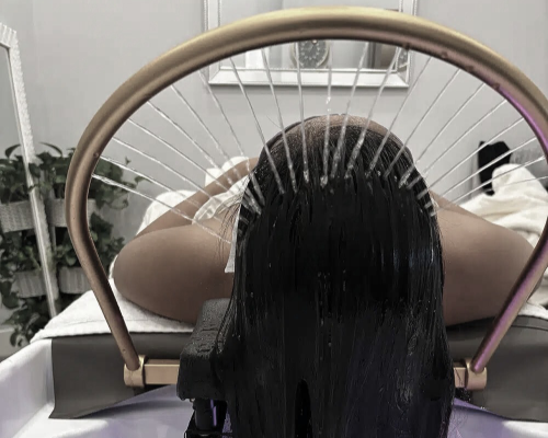 Este tratamiento está diseñado para revitalizar el cabello, promover el crecimiento saludable, mejorar la hidratación y brillo, y reparar el daño causado por factores ambientales o tratamientos químicos. Es una forma de darle a tu cabello un cuidado especial y dejarlo con un aspecto brillante y saludable. ¡Es una experiencia muy relajante y beneficiosa para tu cabello!