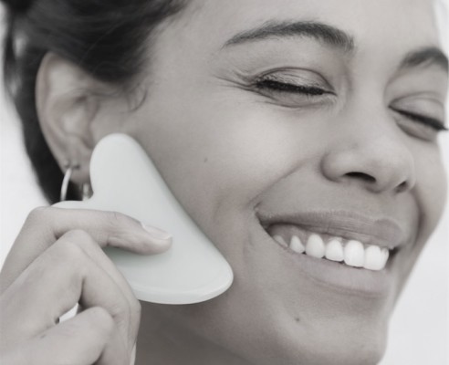 El masaje Gua-Sha es una técnica tradicional china en la que, mediante unas piedras de jade o cuarzo rosa, se masajea con movimientos específicos el cuello y el rostro previamente hidratados con un aceite o sérum facial. Esta técnica, además de promover la absorción y por lo tanto los efectos de los aceites cosméticos aplicados, mejora la circulación, drena los líquidos y adiposidades acumuladas, rejuvenece al liberar tensión de los tejidos y al promover la producción de colágeno e incluso disminuye en algunos casos el acné y consigue que reaparezca en menor medida. Esta técnica además de todos esos beneficios produce relajación disminuyendo los niveles de estrés y aliviando dolores asociados a éste.